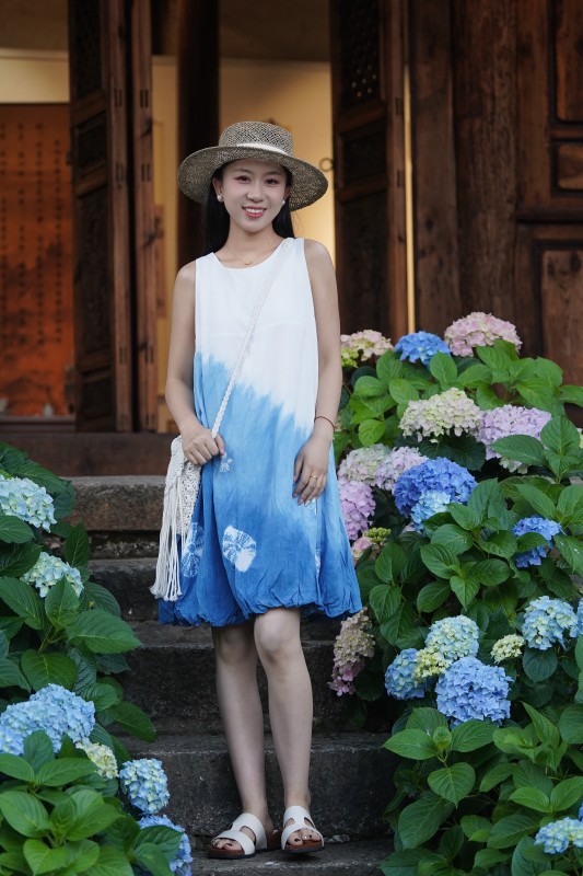 2025新款扎染体验款蓬蓬裙小个子可爱背心款渐变蓝色