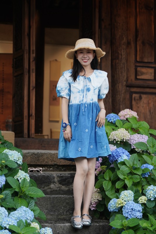 2025新款扎染体验款娃娃领连衣裙矮个子款