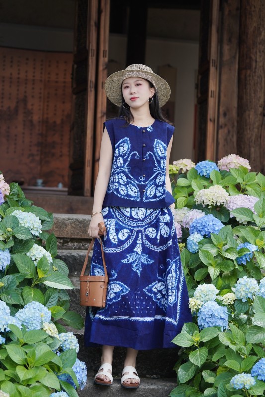 2025新款精品扎染两件套蝴蝶马甲+蝴蝶半身裙