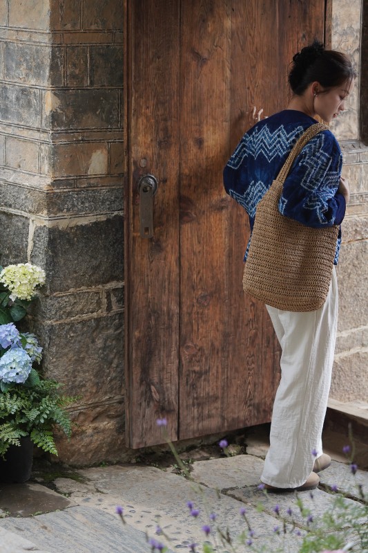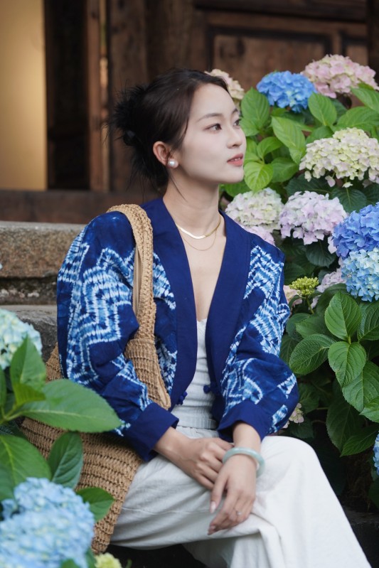 2025新款扎染精品新中式外套双层条纹款宽松款高腰