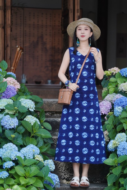 2025新款扎染连衣裙手工背心款