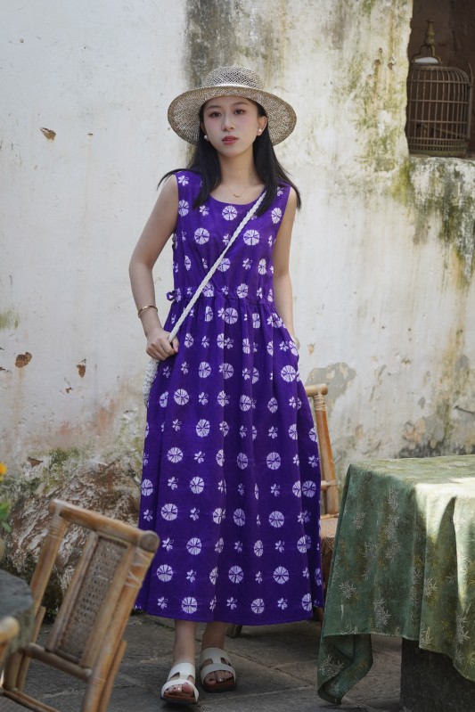 2025新款扎染连衣裙手工背心款抽绳收腰款