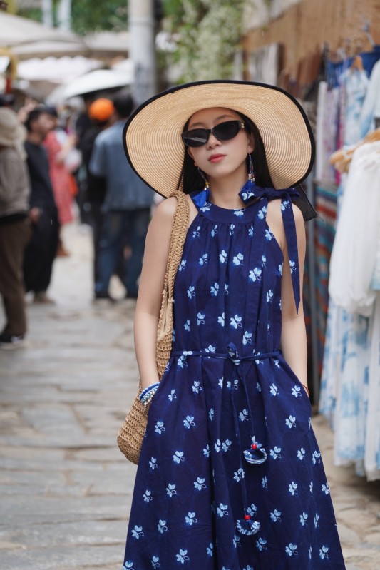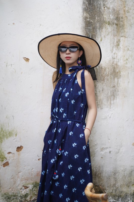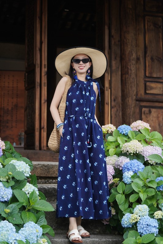 2027新款扎染连衣裙手工挂脖款