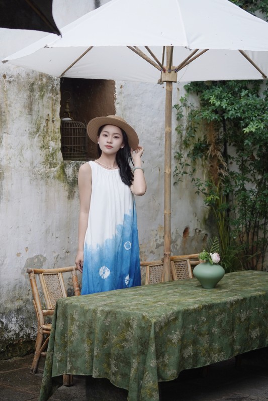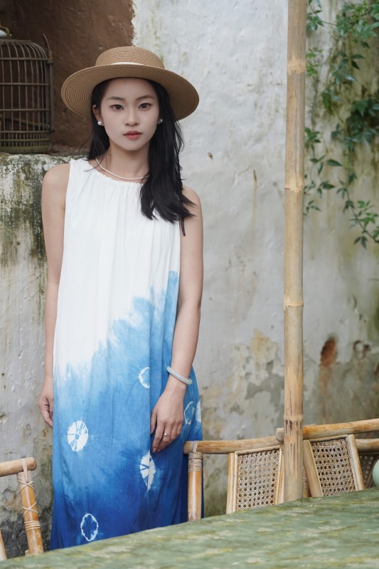 2025新款扎染体验款背心款连衣裙蓝色渐变扎花款