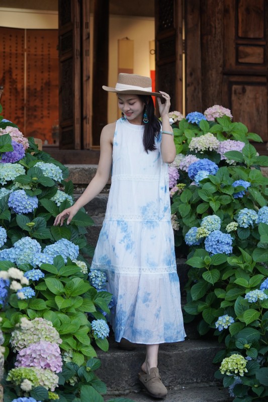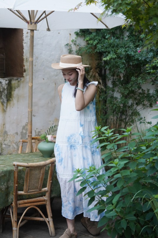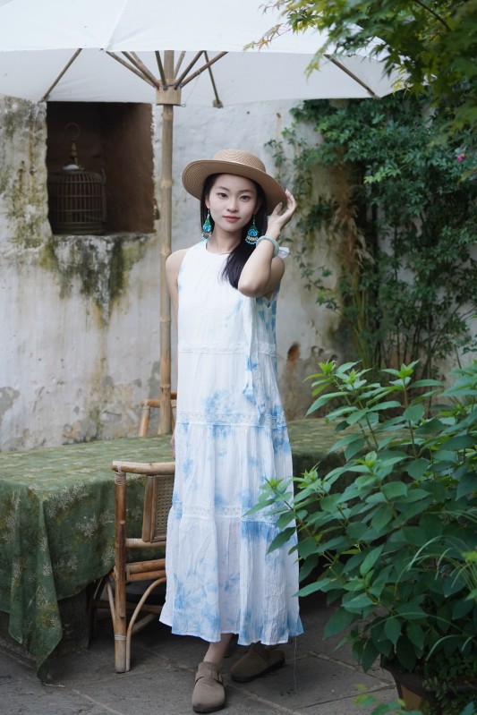 2025新款扎染体验款侧面蝴蝶结绑带蓝天白云款