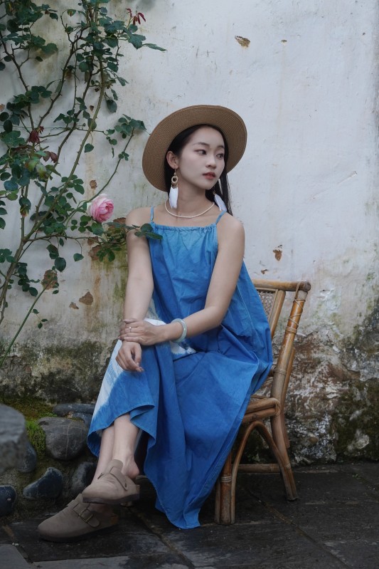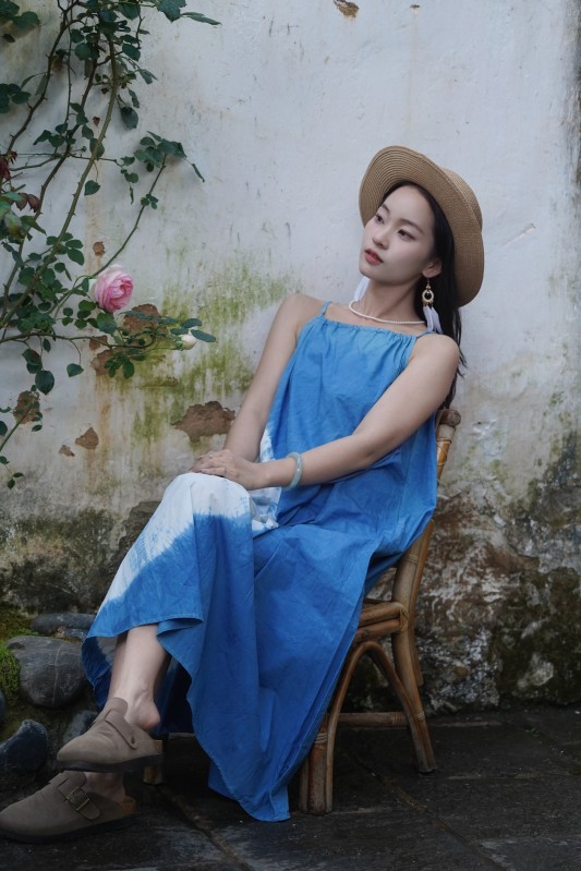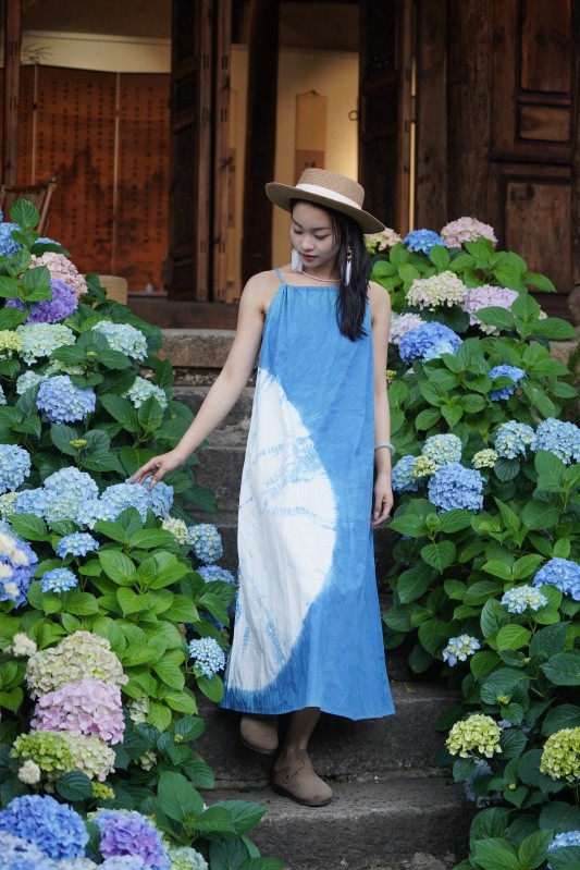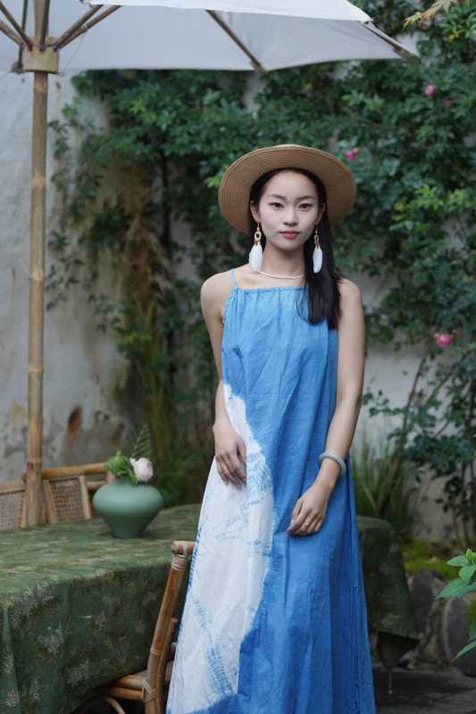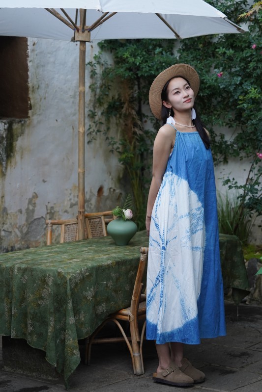 2025新款扎染体验款吊带裙侧面大珠花扎花连衣裙