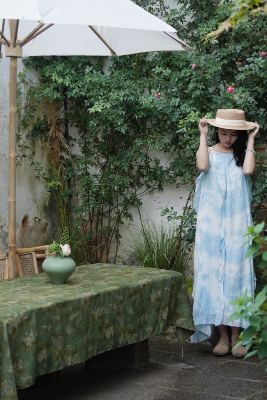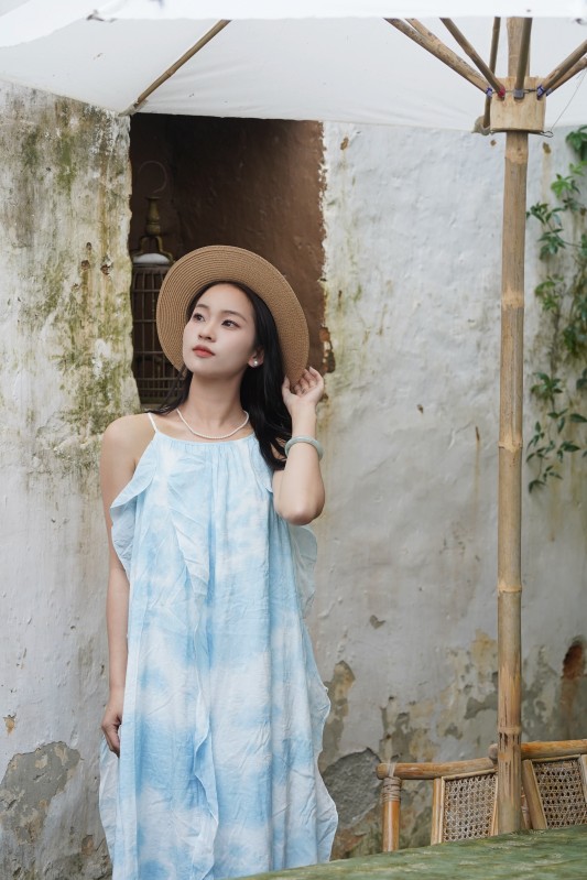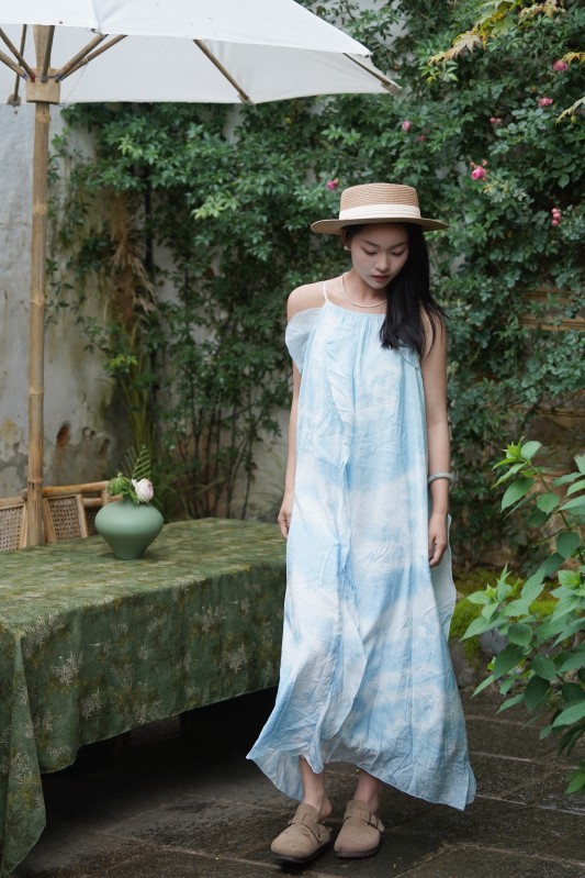 2025新款扎染体验款吊带裙蓝天白云款度假风
