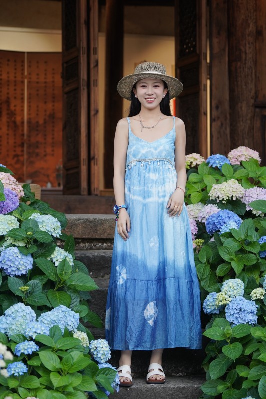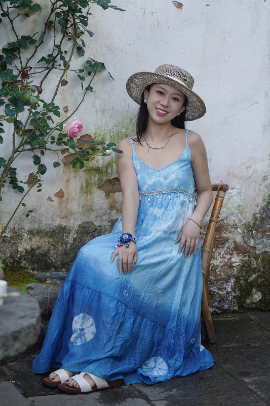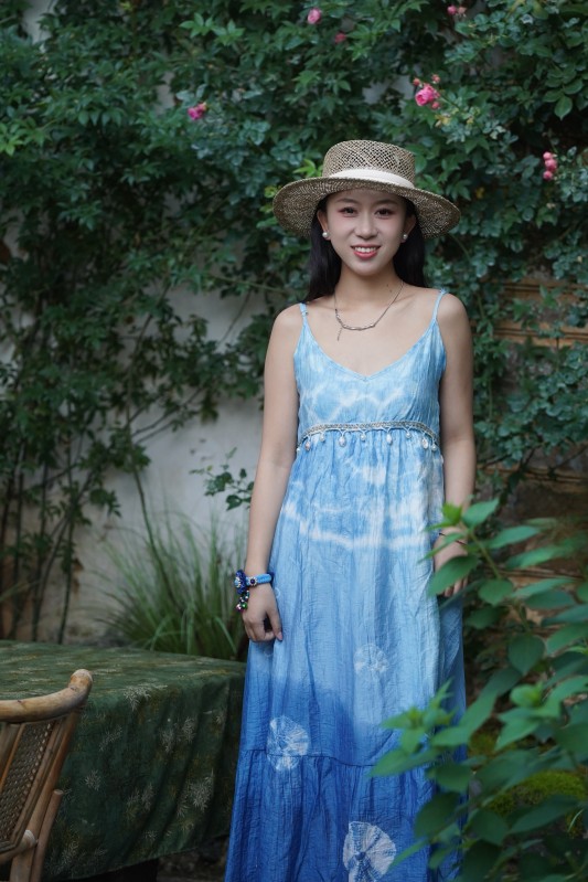2026新款扎染体验款吊带裙连衣裙蓝色渐变手工扎花款