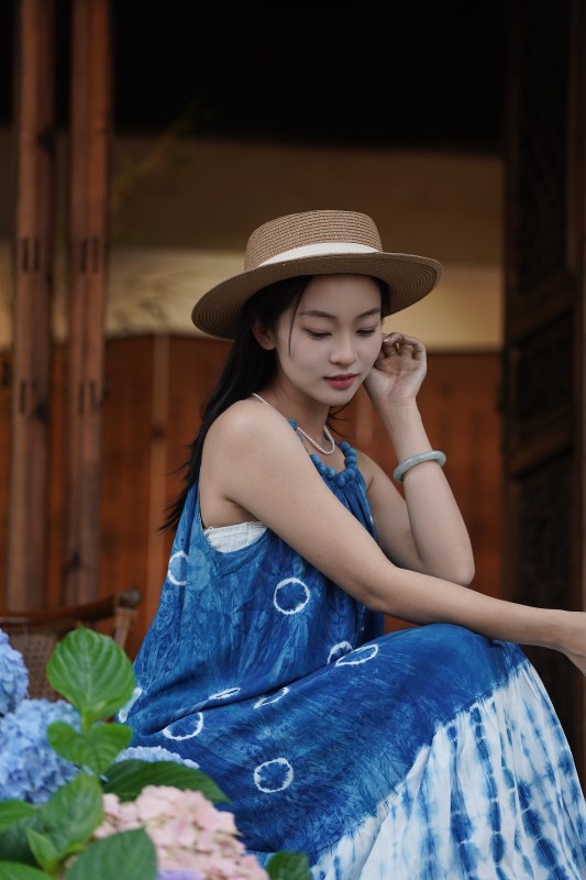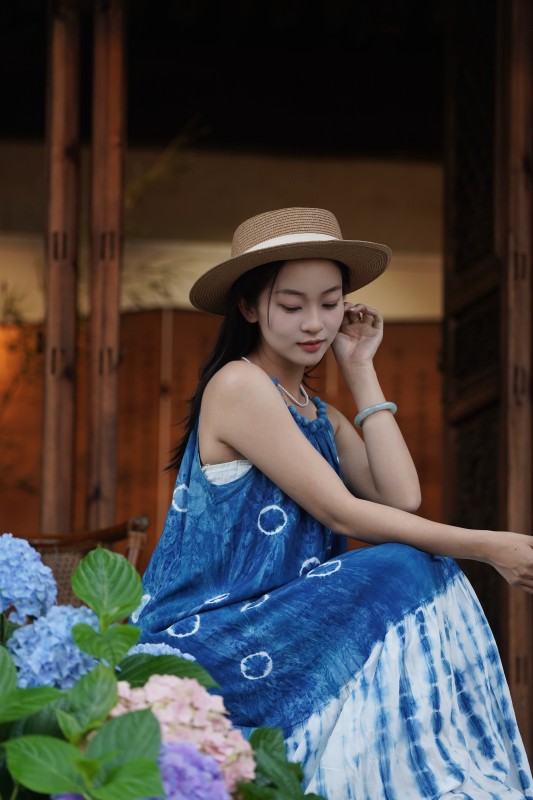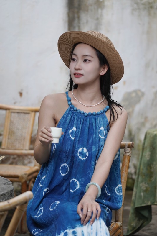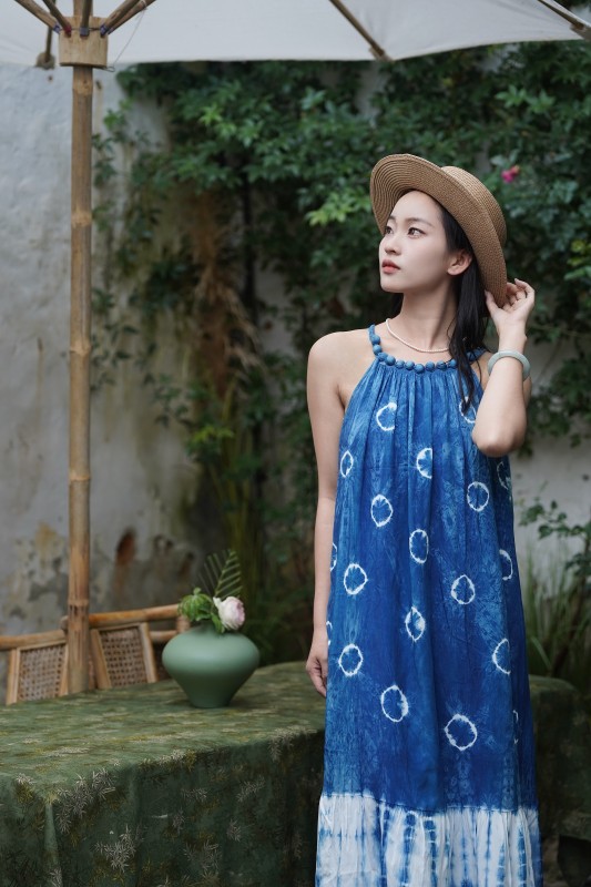 2025新款扎染体验款小圆珠吊带裙连衣裙