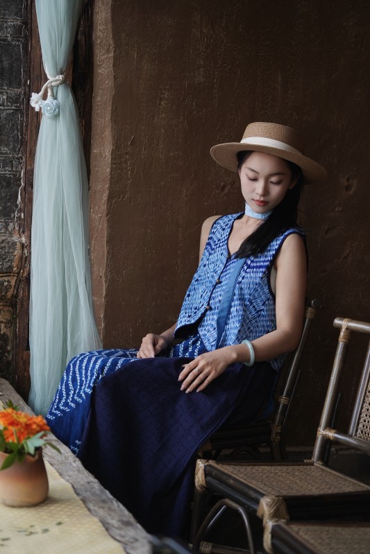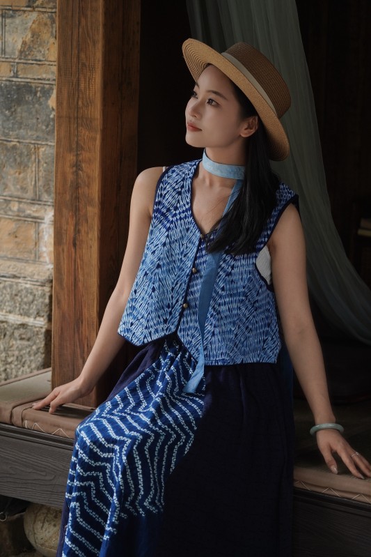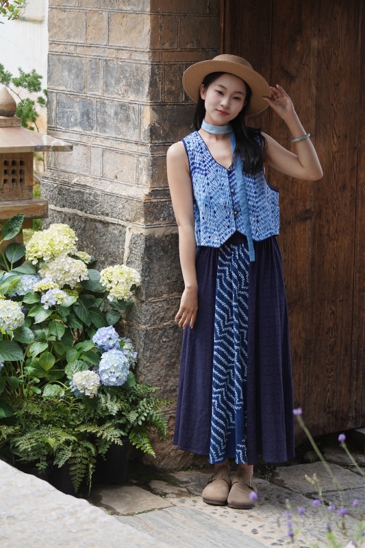 2025新款精品扎染小马甲+扎染亚麻半身裙