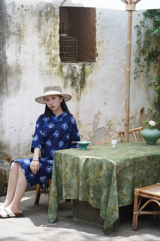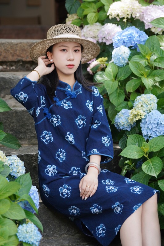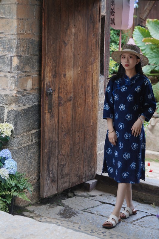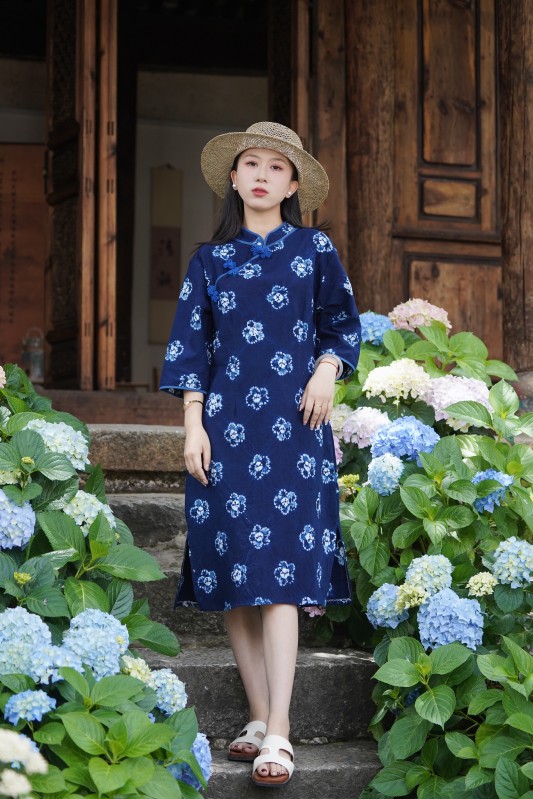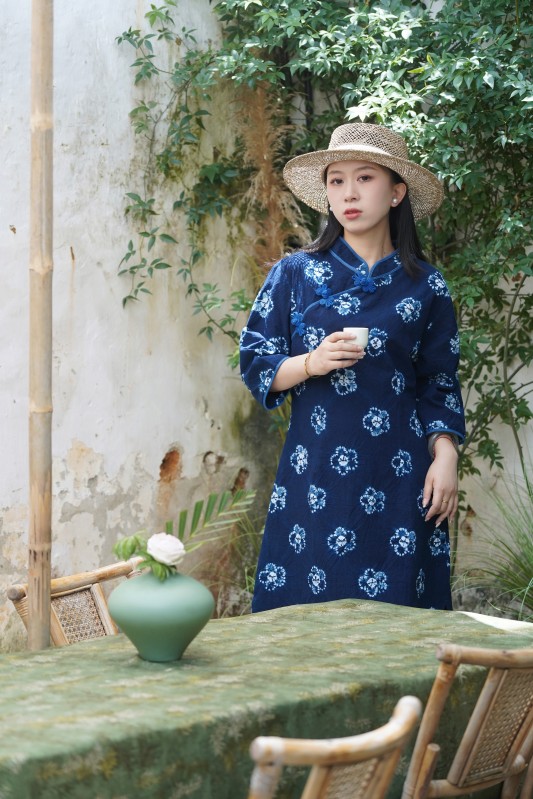 2025新款扎染精品扎染旗袍半袖连衣裙